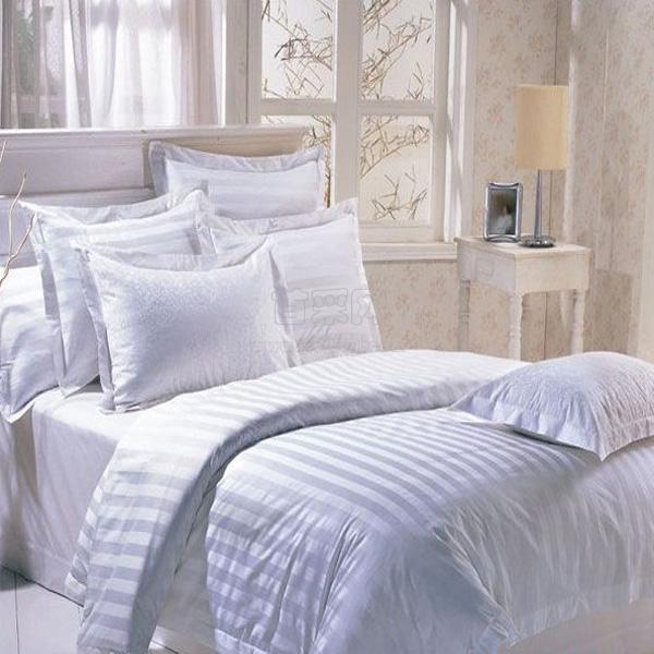 • 规格270×250cm、白色全棉精梳纱、经纱40支、纬纱40支、经纱140根/英寸、纬纱120根/英寸 、3cm锻条或方格、贡缎