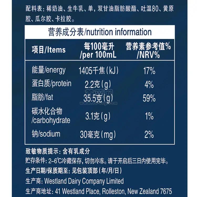 - 包装规格:1Lx12/箱(新西兰进口)
