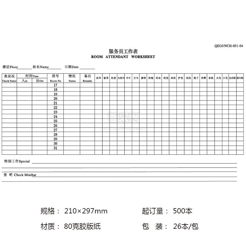 服务员工作表17-31