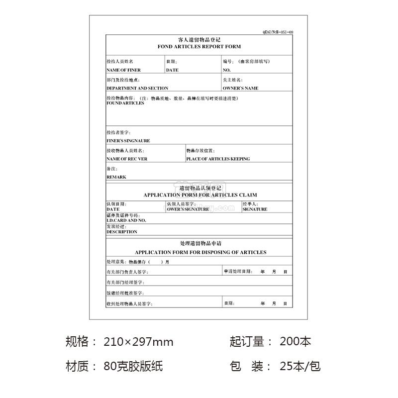 客人遗留物品登记