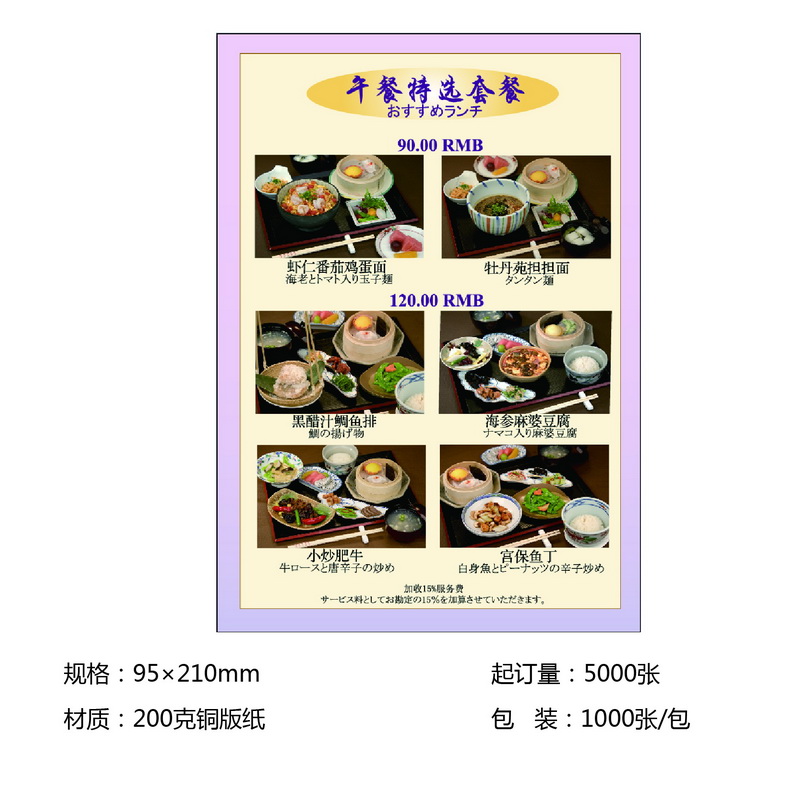 - 包装规格:200克铜版纸 95×210mm 单面四色