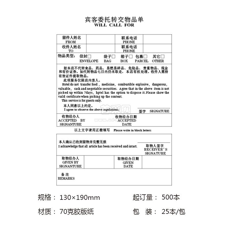 宾客委托转交物品单