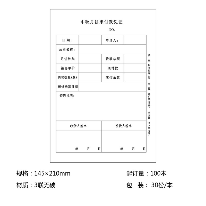 中秋月饼未付款凭证