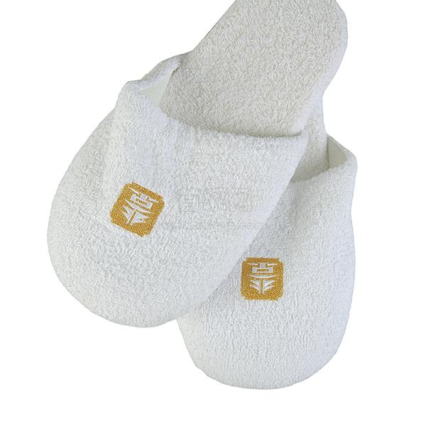 • 规格包头、绣店徽、330克毛巾布面料、鞋底包点塑防滑布、加厚2.5cm泡沫底