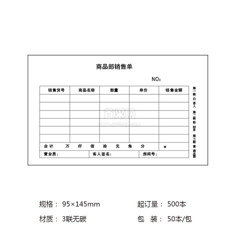 - 包装规格:3联无碳 95×145mm (大64开) 90张×50本/包 单面专色 裱头